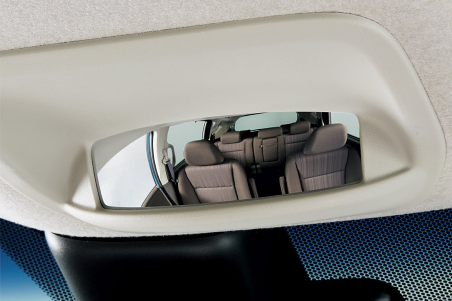 後席を一望できるミラー。ベビーシートに寝かせている子どもの様子を確認するのにも役立つ