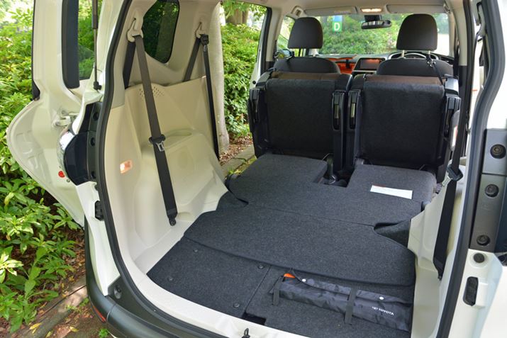 シエンタは、2列目シートを前方に倒し、3列目シートを床下に畳むことで凹凸の少ないラゲッジスペースが現れる