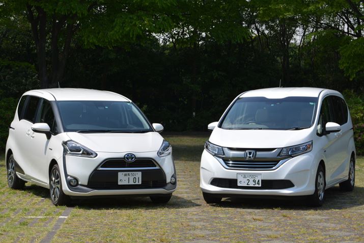 手ごろで扱いやすい車両サイズとラゲッジスペース、6人乗りと7人乗りが選べる使い勝手のよさで高い人気を維持するトヨタ「シエンタ」(写真左)と、ホンダ「フリード」(写真右)。その特徴を、デザイン、室内空間、走りの3点から迫った