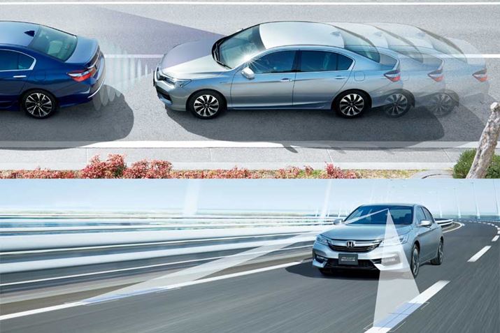 (画像)上:衝突軽減ブレーキ(CMBS)作動イメージ/下:衝突軽減ブレーキ(CMBS)作動イメージ。画像の車種はアコード
