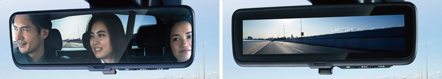 スマートリヤビューミラーのミラーモード (左)とディスプレイモード(右)