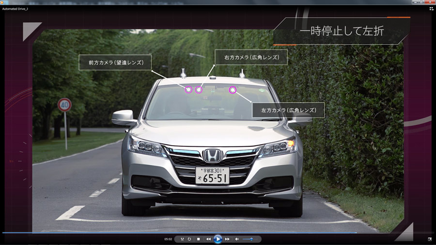 カメラから得た道路状況のみを使い、市街地を想定したコースのデモ走行も体験。こちらも「レジェンド」をベースにしたテスト車を使った