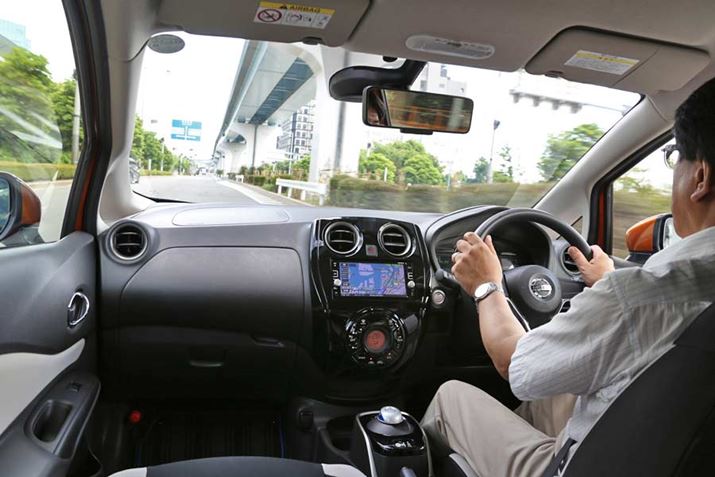 ノート e-POWERのSモード、ECOモードでは強力な回生ブレーキがかかるので、交通量が少ない道路であれば、アクセルペダルをオフするだけで停止することもできる