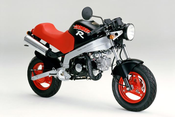 1987年には当時のレーサーレプリカブームの影響を受け、レーシングマシンのようなツインチューブフレームを採用した「モンキーR」が登場。ハンドル位置が低くなり、レーシーなライディングポジションとなっている。アップタイプのサイレンサーはベースとなったモンキーの構造を受け継いでいる部分だが、2000年代にはこの位置にマフラーを持ってくるのがスポーツバイクのトレンドとなり、結果的に流行を先取りしていたように見えるのも面白い。