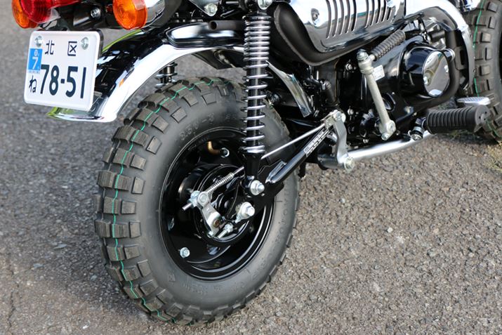 リアタイヤもフロントタイヤ同様のサイズとブラック化されたホイールを搭載し、足元が引き締まったデザインとなっている。サスペンションは高性能なものではないが、エアボリュームのあるタイヤとクッション性の高いシートのおかげで路面の凹凸は気になることはない