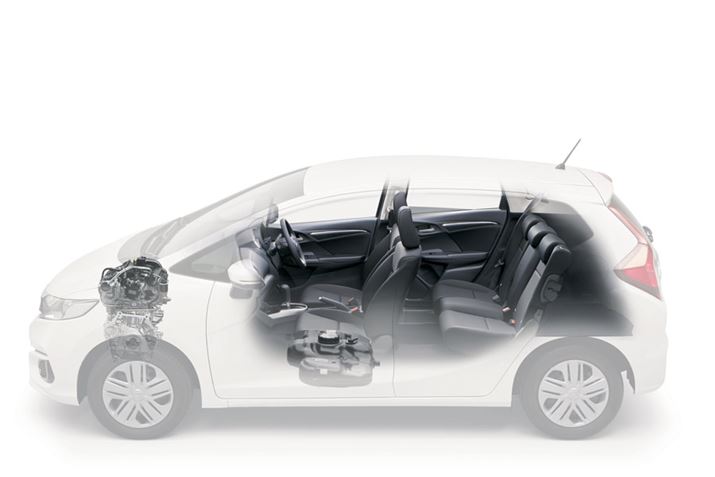 燃料タンクを前席の下に配置する「センタータンクレイアウト」は健在。室内空間の広さとシートアレンジの多彩さを決める基礎技術だ