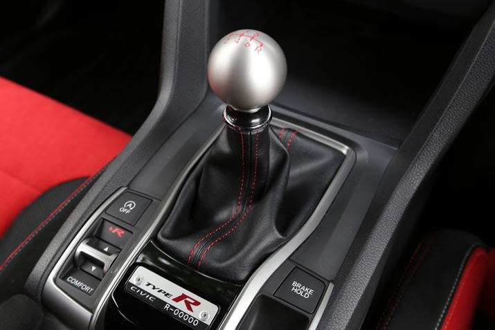 トランスミッションは6速マニュアルのみ。新型シビックタイプRには、自動ブリッピングすることでヒール&トゥと同様のスムーズなシフトダウンが可能となる「レブマッチシステム」が搭載されている。そのため、MT初心者でもサーキット走行などを楽しむことが可能だ