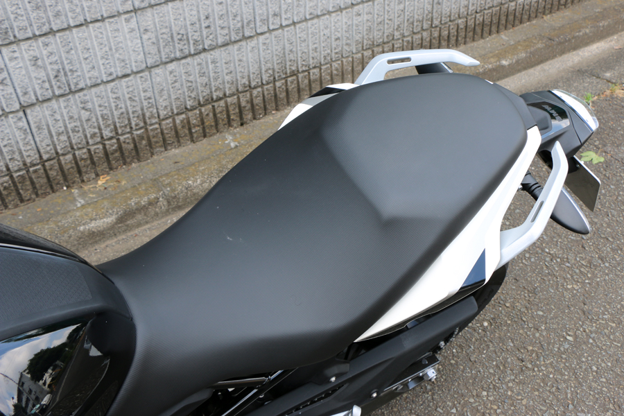 シートは細身だが、予想以上に座りやすくタンデム(2人乗り)もしやすい