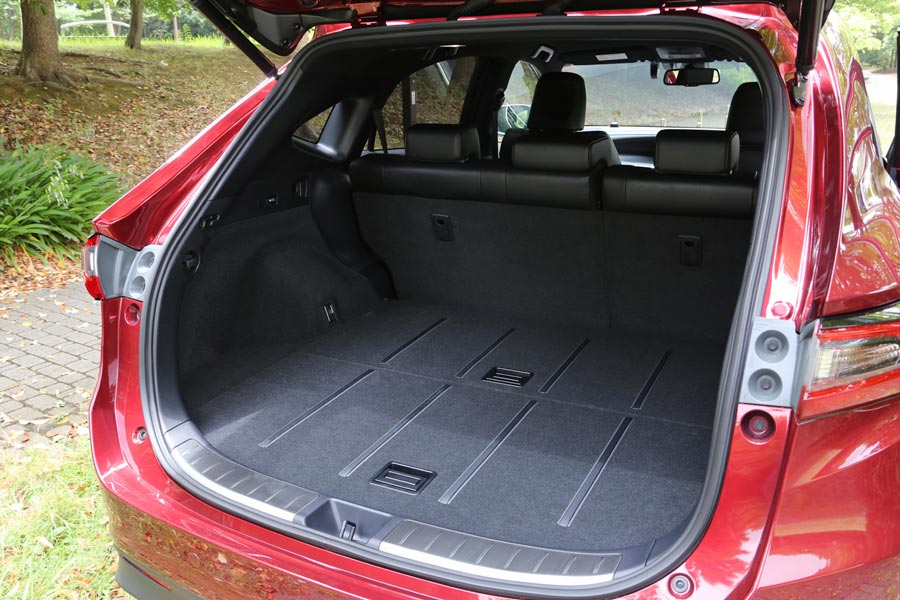 SUVらしく、荷室の床面積は十分に確保されている。荷室の床は少し高めだが、荷物の収納性に不満を感じることはないだろう。ただし、防水処理などは施されていない。さらに、後席の背もたれを前方に倒すとフラットで長い荷室に変更されて、大きな荷物も積みやすい。荷室の印象はSUVというよりも、むしろLサイズのワゴンに近い。