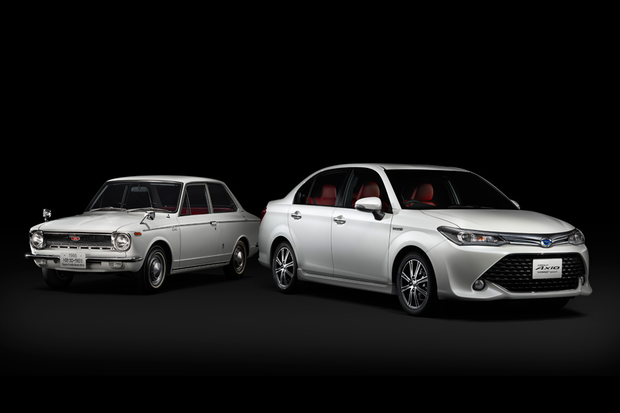 (左)初代カローラ/(右)カローラ特別仕様車 ハイブリッドG“50リミテッド”