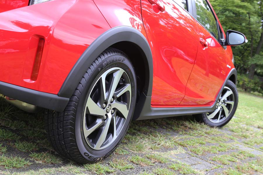 新型アクアクロスオーバーの全長は、4,060mmと短い。全幅は標準ボディと違って3ナンバーサイズだが1,715mmに抑えた。ただし最小回転半径は、16インチタイヤの装着によって5.4mと大回りになる。標準ボディの4.8mに比べて小回りの利きが悪い。
