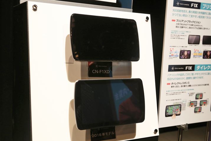 発表会場には、CN-F1XDとCN-F1Dの両機種が比較できるブースがあったので画面を見比べてみたが、CN-F1Dに比べてCN-F1XDのほうが発色がよいうえに、反射もかなり抑えられていた。これなら、車内でさまざまな光や映り込みに対しても効果がありそうだ。
