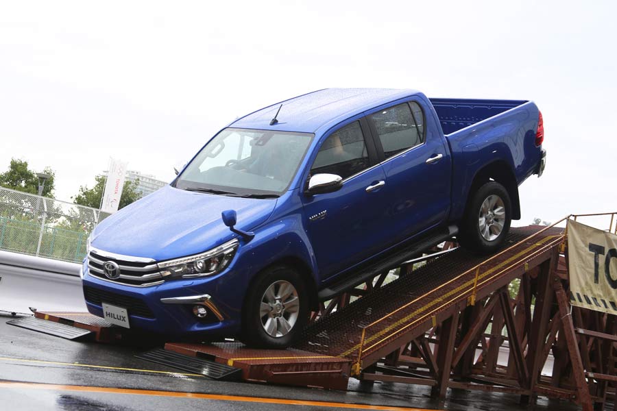 ハイラックスは、車体後部にデッキ(荷台)を持つピックアップトラックだ。世界の過酷な環境下で使用できるようにタフな走行性能を持ち合わせており、オフロードの走破性テストや衝突安全性テスト、渡河テストや高温下でのパーツの耐久テストなど、様々な試験が行われている。