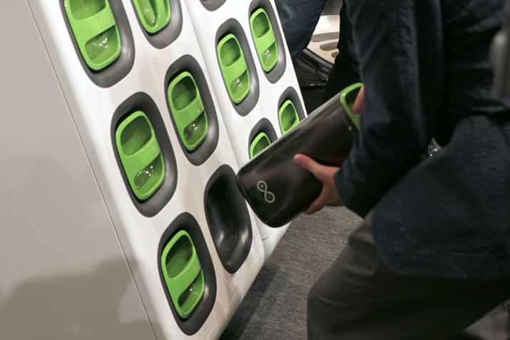 車体からバッテリーを取り外し、充電ステーションにある「充電済み」のバッテリーと交換するだけで完了。2つのバッテリーの交換にかかる時間はわずか30秒ほどだという
