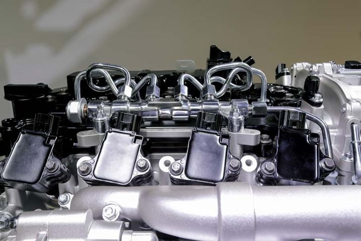 エンジンヘッド部分には、直噴システムが搭載されている。また、補機類としてスーパーチャージャーおよびインタークーラー、モーター機能付き発電機も組み合わされている