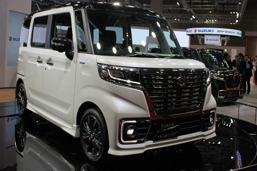 こちらは「スペーシアカスタム コンセプト」。大きなグリルやシックな内装で個性を演出している