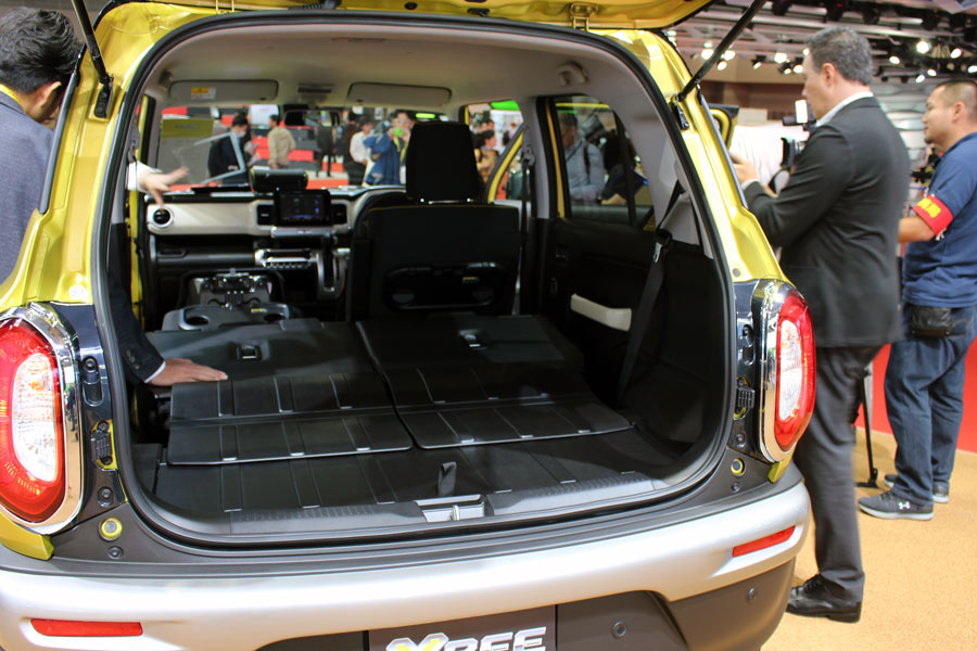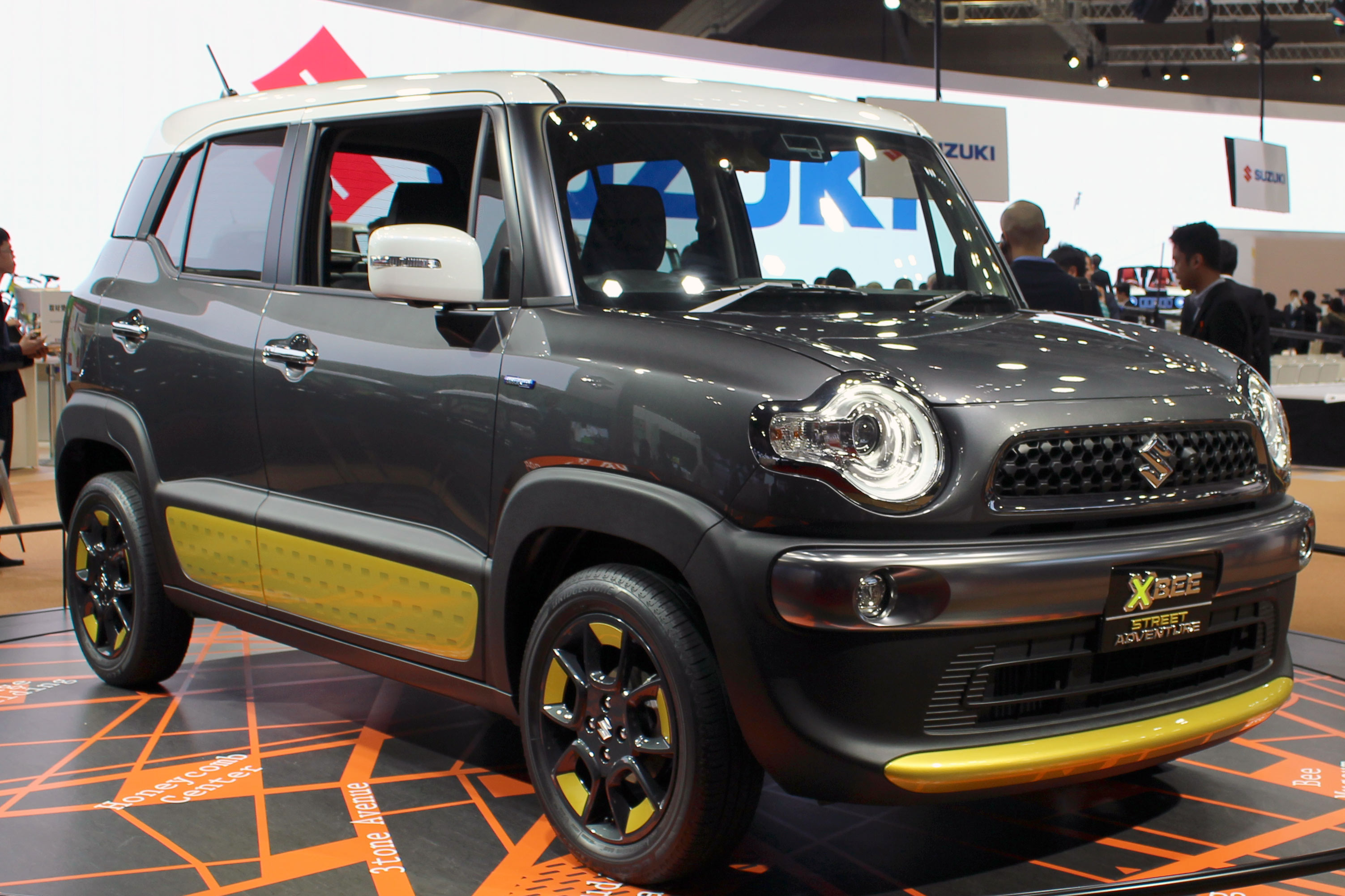 このほかにも、スズキのブースではより市販車に近そうなコンセプトカーが3種類展示されていた。ひとつはハイトワゴン軽自動車の「スペーシア コンセプト」およびそれの派生モデルである「スペーシア カスタム」で、いずれも実際に触れることができる。もうひとつの、小型SUV「クロスビー(XBEE)」は、ハスラーとよく似たフロントデザインが印象的だ。パワートレインは、約1リッター(0.966リッター)直列3気筒インタークラーターボエンジンで、発進時などに加速をアシストするマイルドハイブリッドも搭載されている。なおこちらも実車を触れることができる。最後のひとつは、軽トラックの「キャリィ」をベースにした「キャリィ 軽トラいちコンセプト」。軽トラを仮設店舗として利用する軽トラ市は今全国に広まりつつあるが、そうした新しいニーズに対応させ、収納性とともに快適性も高めたものとなっている。