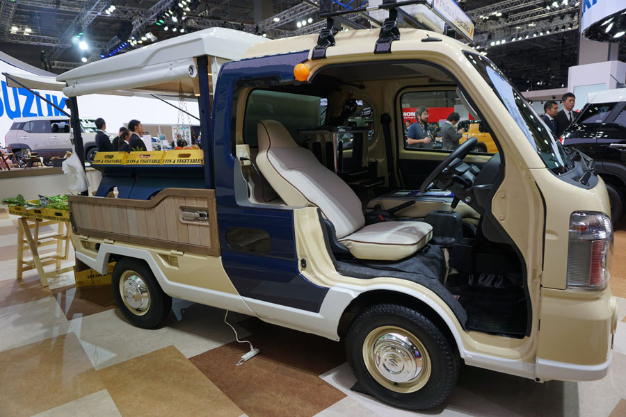 軽トラを仮設店舗として使う「軽トラ市」が全国に広がっている。「キャリィ 軽トラいちコンセプト」は、そんな軽トラ市に最適化したコンセプトカーだ