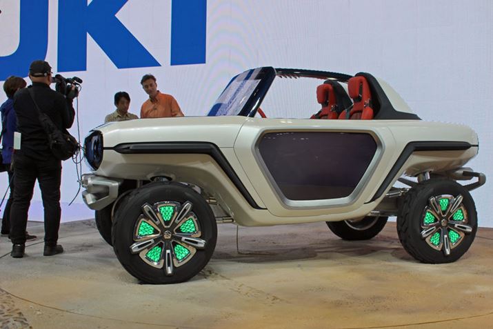 「ジムニー」をEVで再現したような「e-SURVIVOR」。今回のスズキブースで最も注目するべき1台だろう