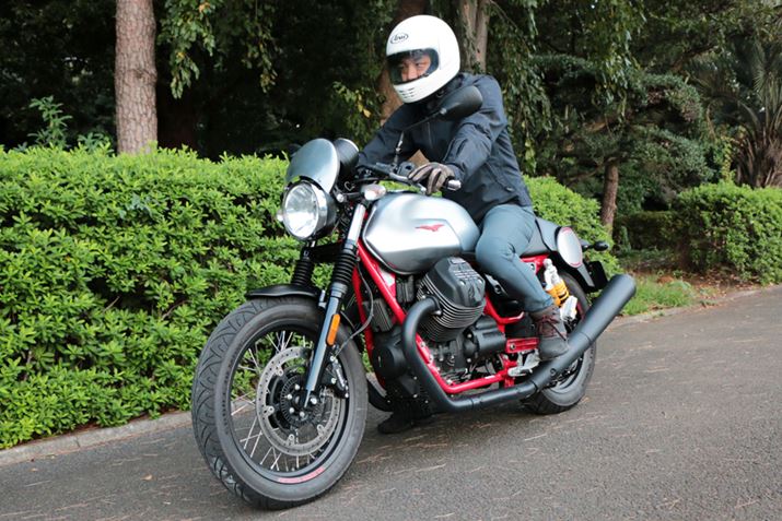 「V7 V Racer」はクラシカルなレーサー仕上げながら、またがってみるとライディングポジションはそれほどキツイ前傾を強いるものではない。トップブリッジの下にマウントされたハンドルだが、位置はそれほど低いわけではなく、スポーティーなデザインのステップも現代のスポーツバイクと比べると前方に位置しているので、街乗りやツーリングで使用してもストレスを感じることはないだろう。あえて気になる点をあげると、着座位置が現行のいわゆるスーパースポーツと比べると後ろになるため、ハンドルが少し遠く感じることと、ハンドルの垂れ角が大きめな点。これらは、慣れが必要になるかもしれない。