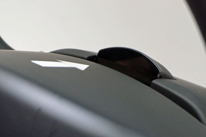 12月に発売予定のパイオニアのドライブレコーダー「ND-DVR40」。小型のボディでフロントガラスに貼り付けて設置できる