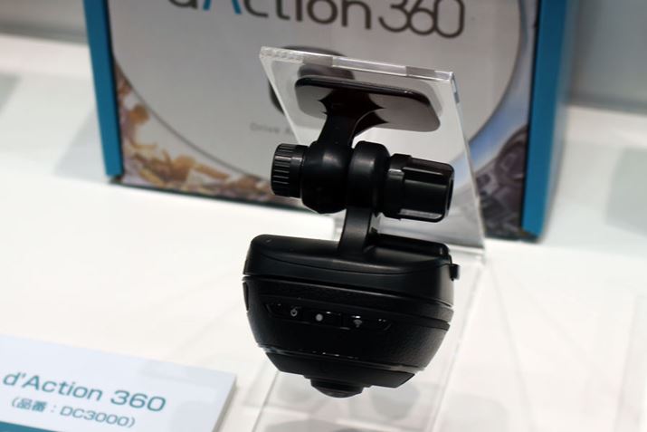 カーメイトが発売している車載360°カメラ「d'Action 360」。1台で前後左右を記録できるため、後方からのあおり運転や追突などの様子も記録できる