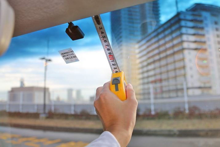スズキ「ソリオ」のフロントガラス上部20%は14cmになりますので、上部から14cmの距離を実際に測って印などをつけ、その範囲内にドライブレコーダーを設置します