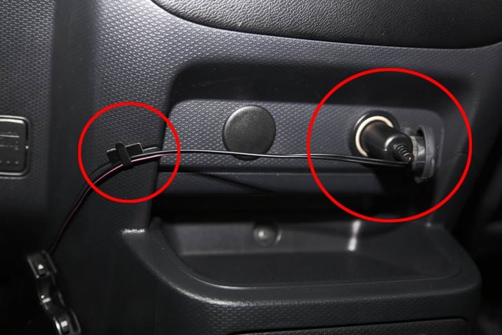 ここまでくれば、あとはシガーソケットにケーブル先端のプラグを挿せば、フロント側のケーブル処理は完了です。