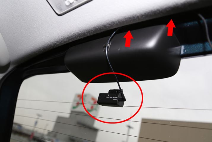 横の取り付け位置に関しては、バックミラー裏の干渉しない位置への設置が推奨されています。