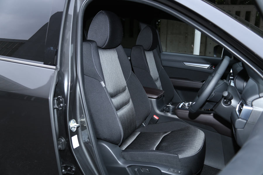 CX-8はSUVでありながら、全車が「3列目シート」を備えている。1列目の座り心地はCX-5に準じるが、サイズに余裕を持たせてあるので、肩まわりのサポート性がよい。長距離を移動する時も快適で、スポーティーな運転にも適する。