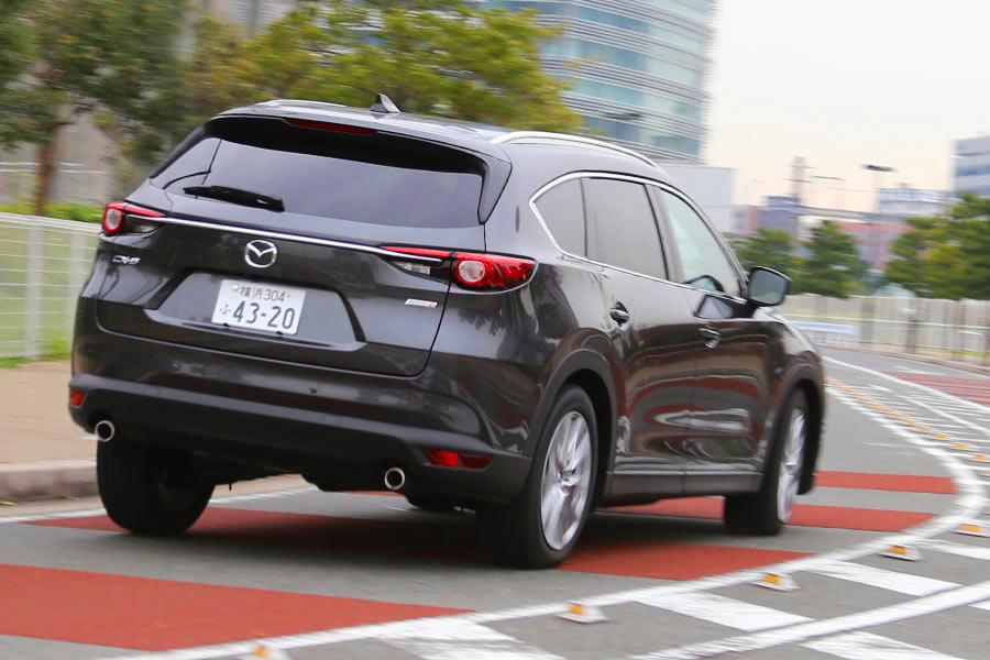 そして、CX-8では走行安定性にも注目したい。CX-5よりも安定していて乗り心地とのバランスもすぐれている。操舵に対する反応は、機敏でも鈍くもなく、SUVとしてバランスがよい。前輪のグリップ性能も十分で、車両の向きが確実に変わる。