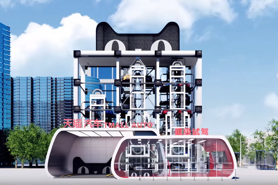 アリババは、2017年12月7日に中国国内における電気自動車のオンライン販売をフォードと共同で行う提携を締結。その後、自動車専用の自動販売機の設置を明らかにしました。同社が公開している動画には、近未来的なデザインの巨大な自動販売機が登場します。