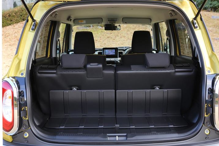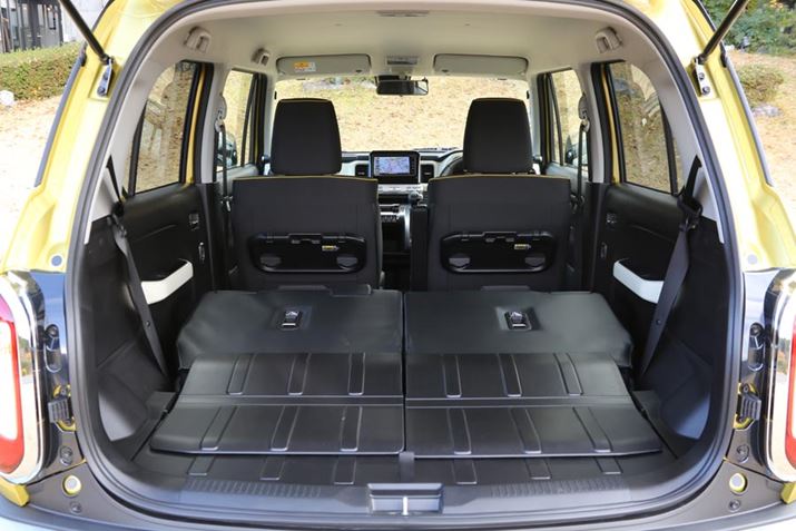 スズキ「クロスビー」のと左右リアシートを倒した状態。画像のグレードは、フロアが防汚タイプとなっている「HYBRID MZ」