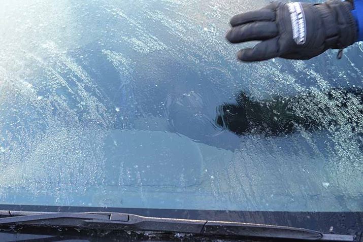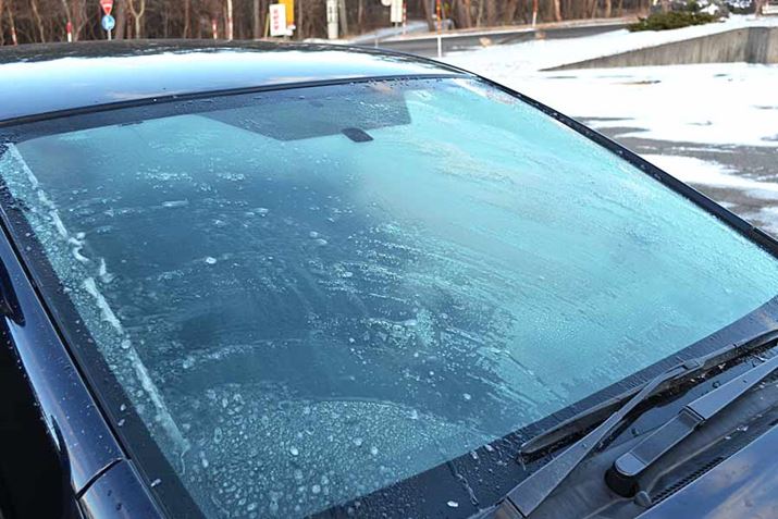 これは数ミリ級の氷が張っている状況ですが、もっと薄い氷でも前はほぼ見えなくなります。ワイパーだけでは除去できず、溶けるまで運転不能