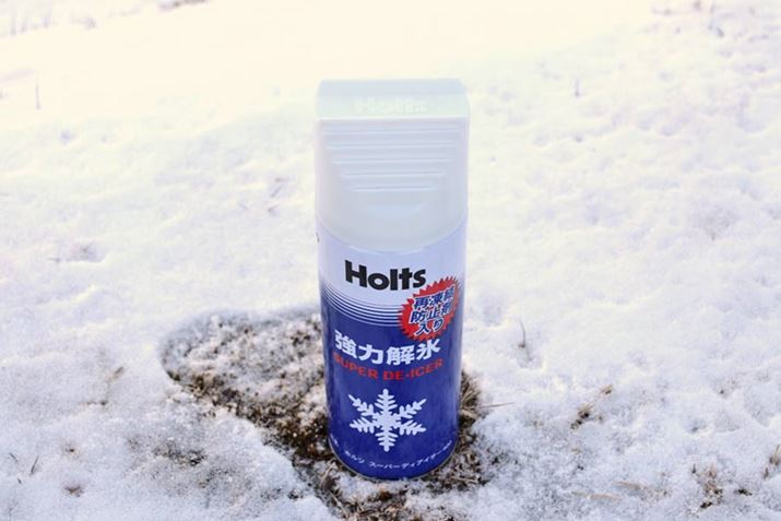 タッチアップペイントなどボディケミカルでおなじみHoltsの解氷剤。付属のチューブを使用すればかぎ穴の凍結にも対処可能。ウィンドウにコーティングによる撥水処理を施している場合、コーティングの種類によってはその効果が損なわれる可能性があるとのことなので、撥水処理を施している場合はご注意を。