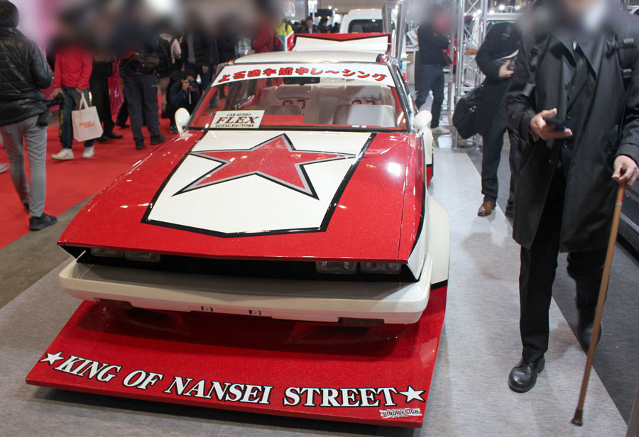 トヨタ「クレスタ(GX62)」がベース。天に向かって伸びるマフラーと、前にせり出す巨大なフロントフェンダーのかもしだす強烈な80年代テイストが、異彩を放っていた。もちろん公道走行は不可だ