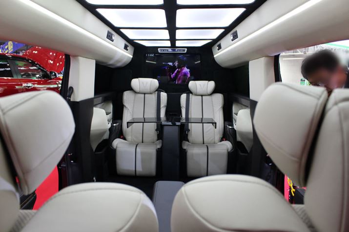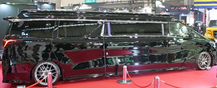 昨年に続いて展示された「ヴェルファイア」のストレッチリムジン。全長6.9mがもたらす広大なリアスペースがウリだ
