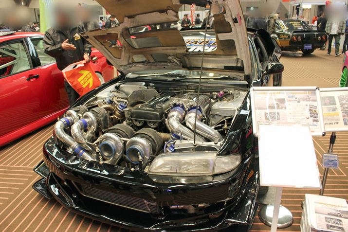 日産「シルビア(S14)」に、トヨタの直列6気筒「2JZ」系エンジンを載せ、さらに4個のターボを組み合わせた怪物。どれほどの出力なのか??