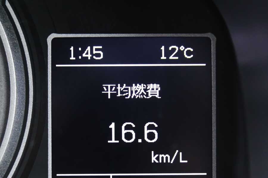 クロスビーの実燃費結果は、「16.6km/L」となった。クロスビーは、加速時にモーターによってエンジンをアシストしてくれる。このモーターアシストは、1,500回転以下からの低い回転数から踏み込んでも、エンジントルクが上がったかのようにスムーズにアシストしてくれて、乗っていると軽快なアシスト感がとても心地いい。