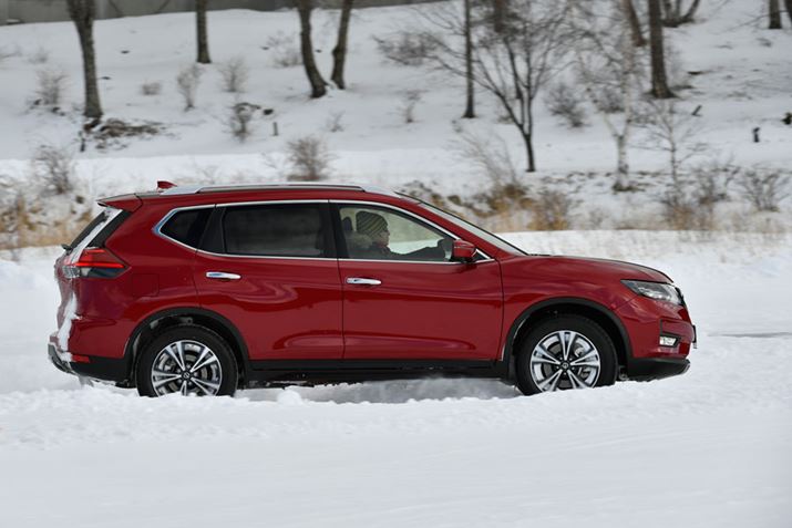 まず、雪のワインディングを「Xトレイル」で走り出す。さすがSUVだけあって、確かなトラクション性能にフラットな乗り心地。全体に動きがゆったりとしており、雪道でもナーバスにならずに走ることができた。