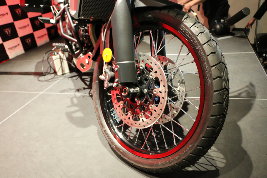 「タイガー800」シリーズのオンロードに振ったセッティングの「XR」系(タイガー800 XR/タイガー800 XRX/タイガー800 XRT)は、フロントホイールが19インチのキャストホイールにされ、オンロードでの剛性感を高めているのがポイント。「1200」シリーズの場合、ホイールサイズはオン/オフフロード志向モデルともに変わらない