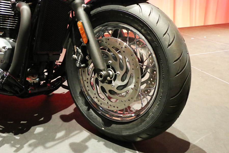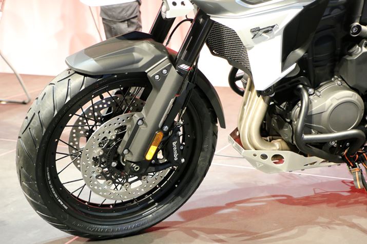 19インチのスポークホイールに120/70 R19のタイヤを装着。ブレーキにはブレンボのダブルディスクが採用されている