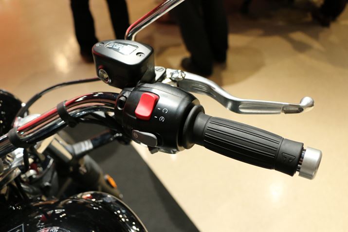 アクセルグリップもクラシカルな樽型だが、アクセルを操作しなくても高速走行ができるクルーズコントロールを搭載している