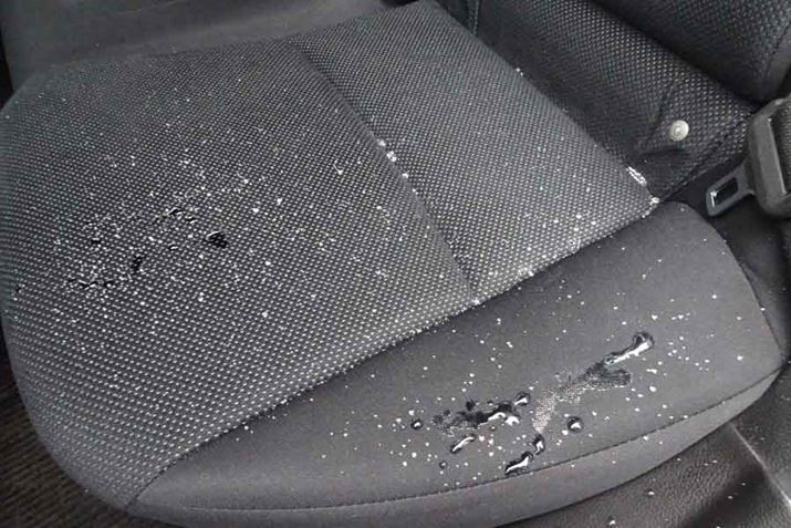 塗布してから4時間ほど乾かせばOKということで、施工はカンタン。愛車(スバル・インプレッサG4先代モデル)のリアシートに試してみたところ、実用車のシートの座面サイド部分によくみられる合成繊維では、かなり強力に撥水することが確認できました。水なら90%ぐらい完全にはじきます。