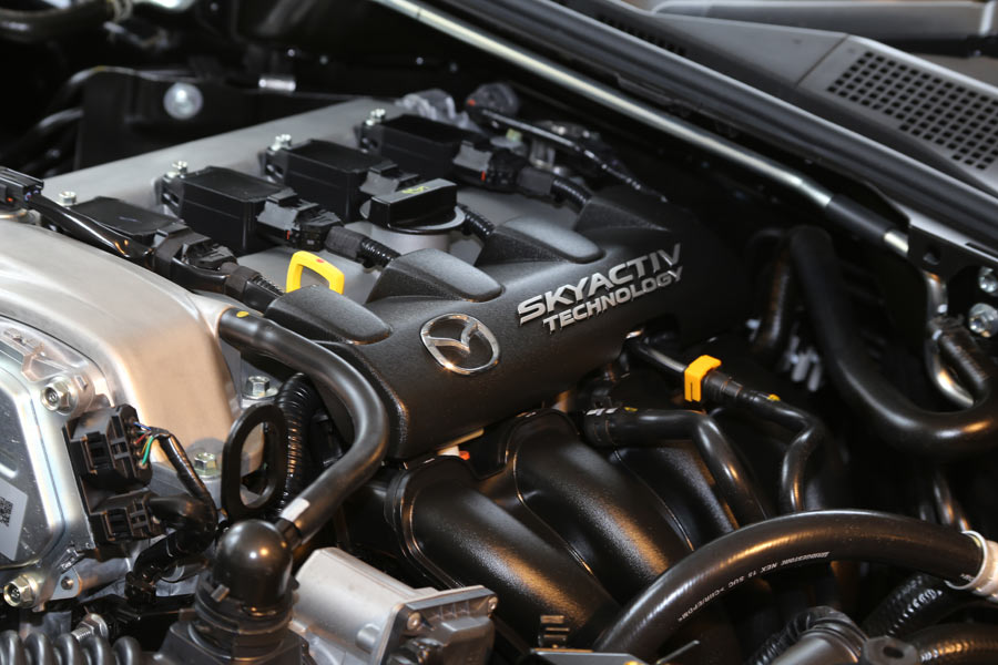 エンジンやトランスミッションなど、基本的なパワートレインはロードスターと変わらない。そのため、エンジンにはマツダロゴとSKYACTIVの文字が刻印されている
