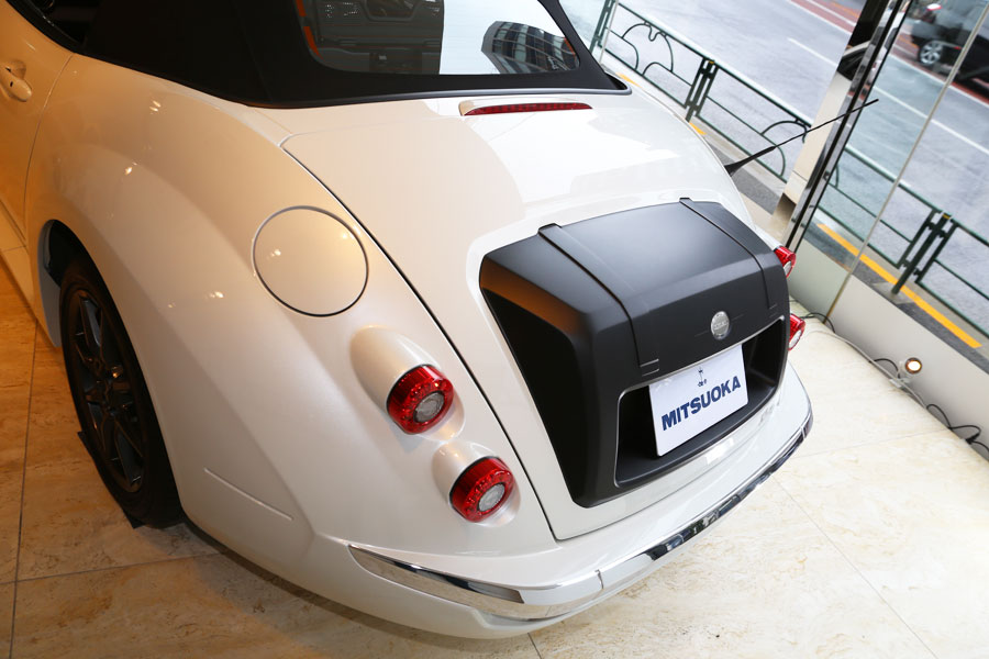 ミツオカ「ヒミコ」のリアイメージ。ロードスターと同じく、幌は手動で開閉する