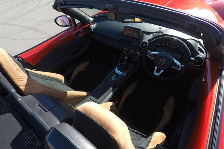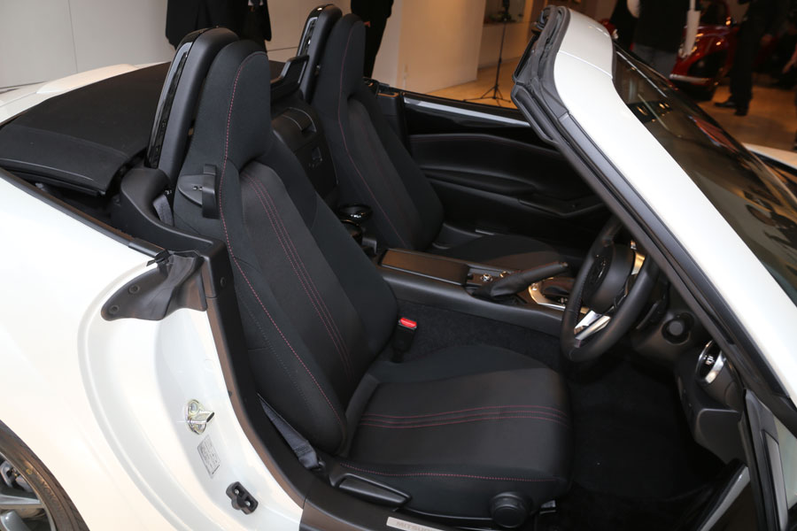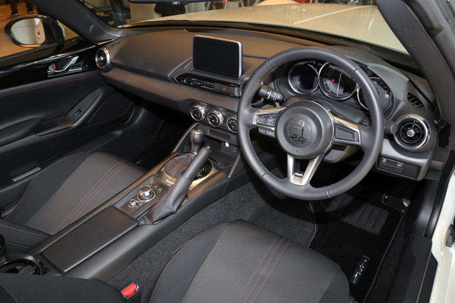 内装については、ステアリング中央のメーカーロゴが異なるのみで、そのほかはロードスターとまったく一緒だ。