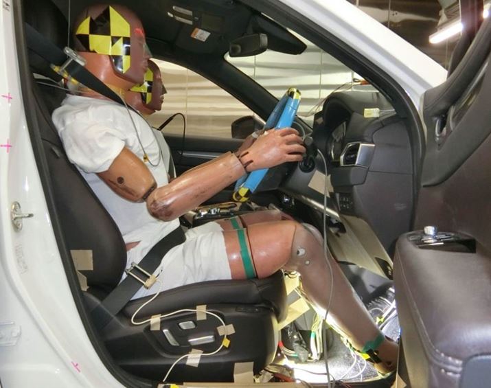 CX-8に取り付けられたダミー人形には、60チャンネルのものセンサーが取り付けられている。動画撮影のため足元がライトで照らされていた