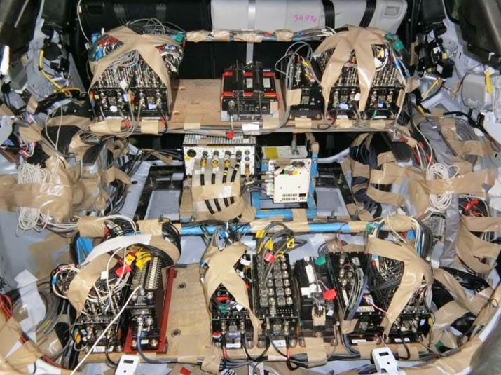 車体や外部まで含めれば、衝突実験で使われるセンサーやカメラは合計250チャンネル以上。当然それらに対応する監視用機材も膨大なものになる