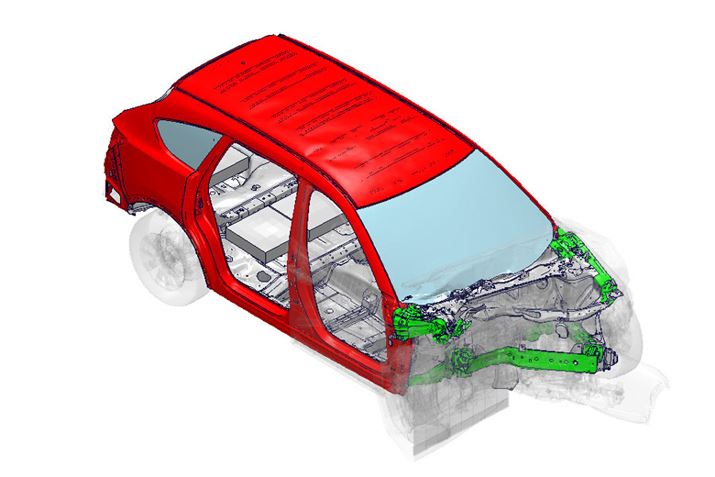 マツダは新車開発に「一括企画」という独特の方法を採用している。これは、車種ごとに新型車を開発するのではなく、5〜10年先を見越して、マツダの全車種をあわせて企画するという方法だ。開発部門だけでなく、生産や購買、サプライヤーまで一体になってプランを作る。そして、共有化できるところは、とことん共有化するという方針だ。これが安全性能の向上にも効果を及ぼしているという。